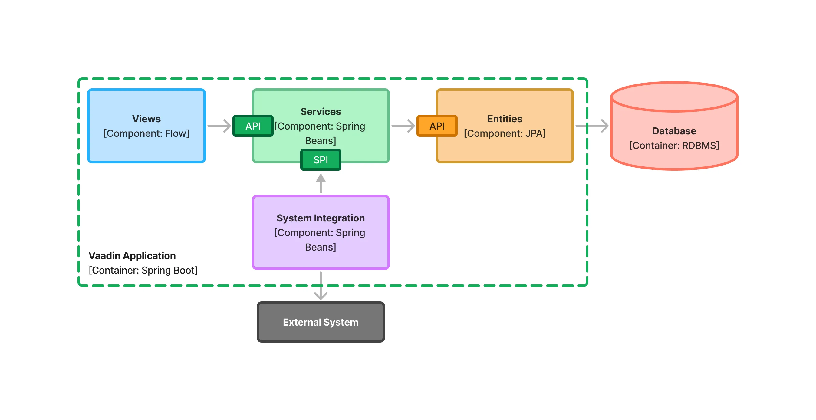 Vaadin applications are composed of system components, one of which is the user interface. The number of system components depends on the size and complexity of the application. A small application could have only one component. A large application might have ten or twenty components.
