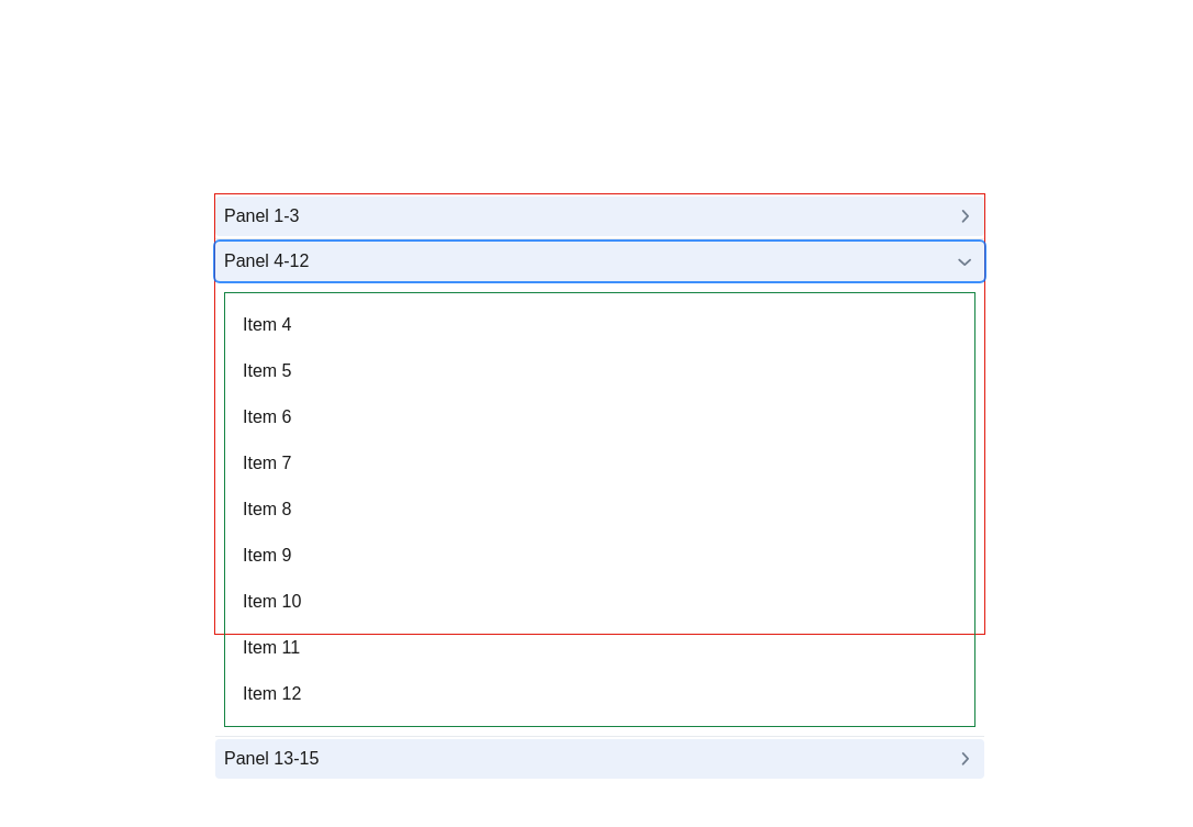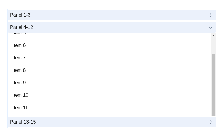 accordion.add("Panel 4-12", createPanelContent("Item 4", "Item 5", "Item 6", "Item 7", "Item 8", "Item 9",