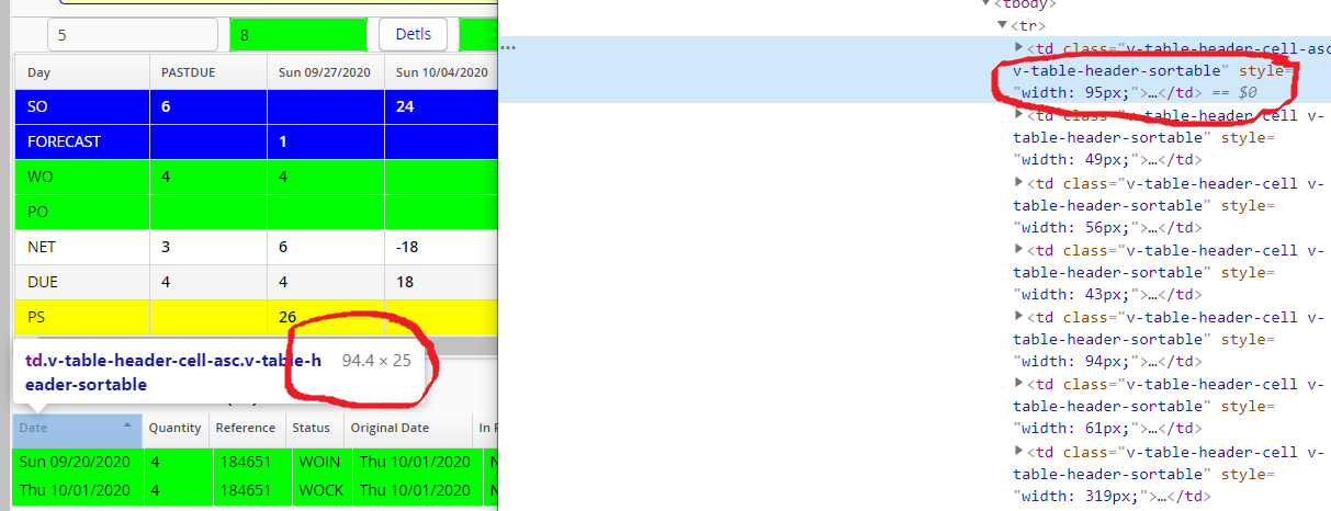 Thanks. I just noticed something interesting. I have one table the behaves perfectly, but then, on the same view, I have a second table where it is off. What is super interesting is that the “header” and “data” columns have the same width in HTML, but look different from perspective of the browser ( Brave browser, so Chromium based ). Any ideas what would cause that?