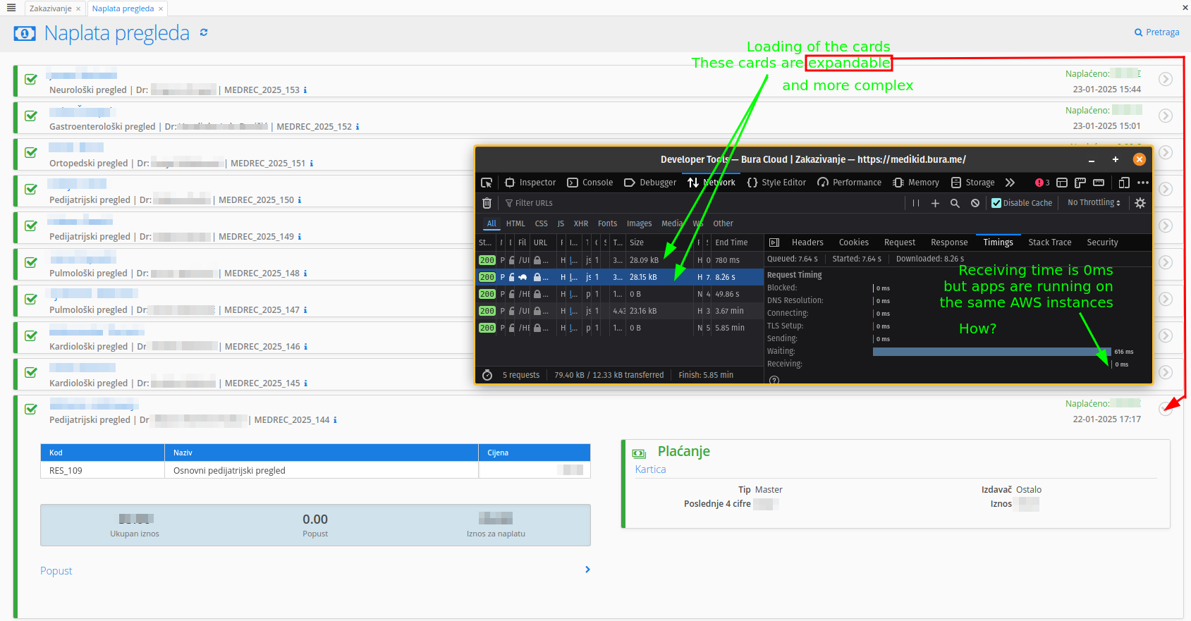 As you can see view is even more complex than the one created with Vaadin v24.6. Firefox Dev Tools show that Receiving time on Vaadin v8 version is 0ms and I can’t figure out why.