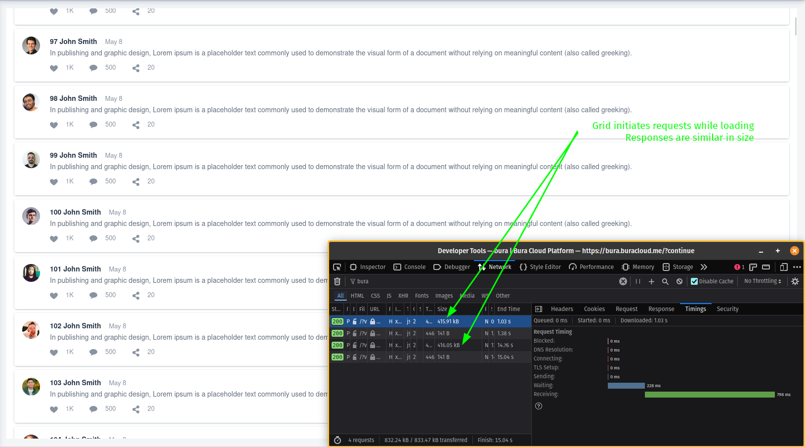 Before I used 5000 objects on backend but to be sure we are not comparing pears and apples, as Christian said, I reduced that number to 40. I chose that number because I saw that v8 grid is loading 40 rows initialy and v24 grid is loading 80 rows(or maybe it loads 2 times in row).