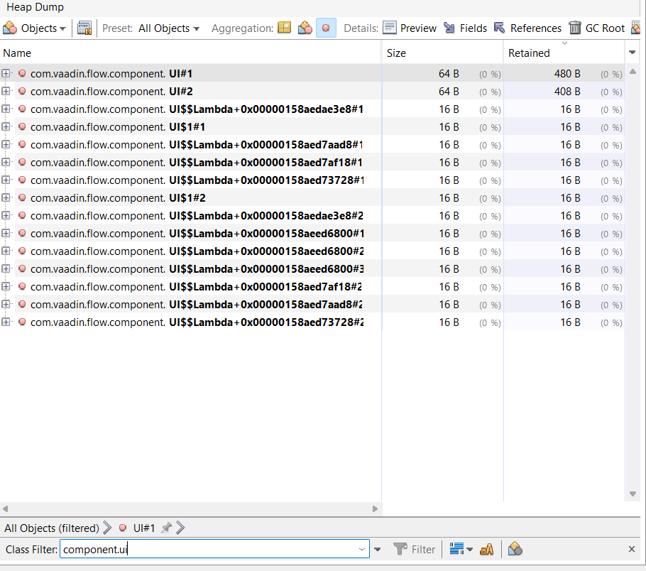 Instead, I recommend measuring the actual consumption by comparing the heap size before and after opening a view. There’s some noise in this measurement due to background activity and e.g. asynchronous garbage collection so you need to test it with e.g. 100 UIs to make things average out.