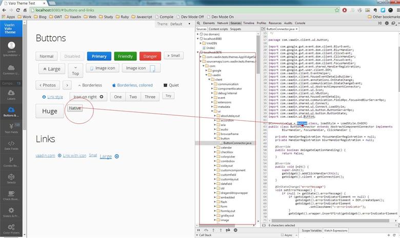7. 打开chrome devtools 调试代码,可以清晰的看到vaadin和gwt的js转换成的java代码。